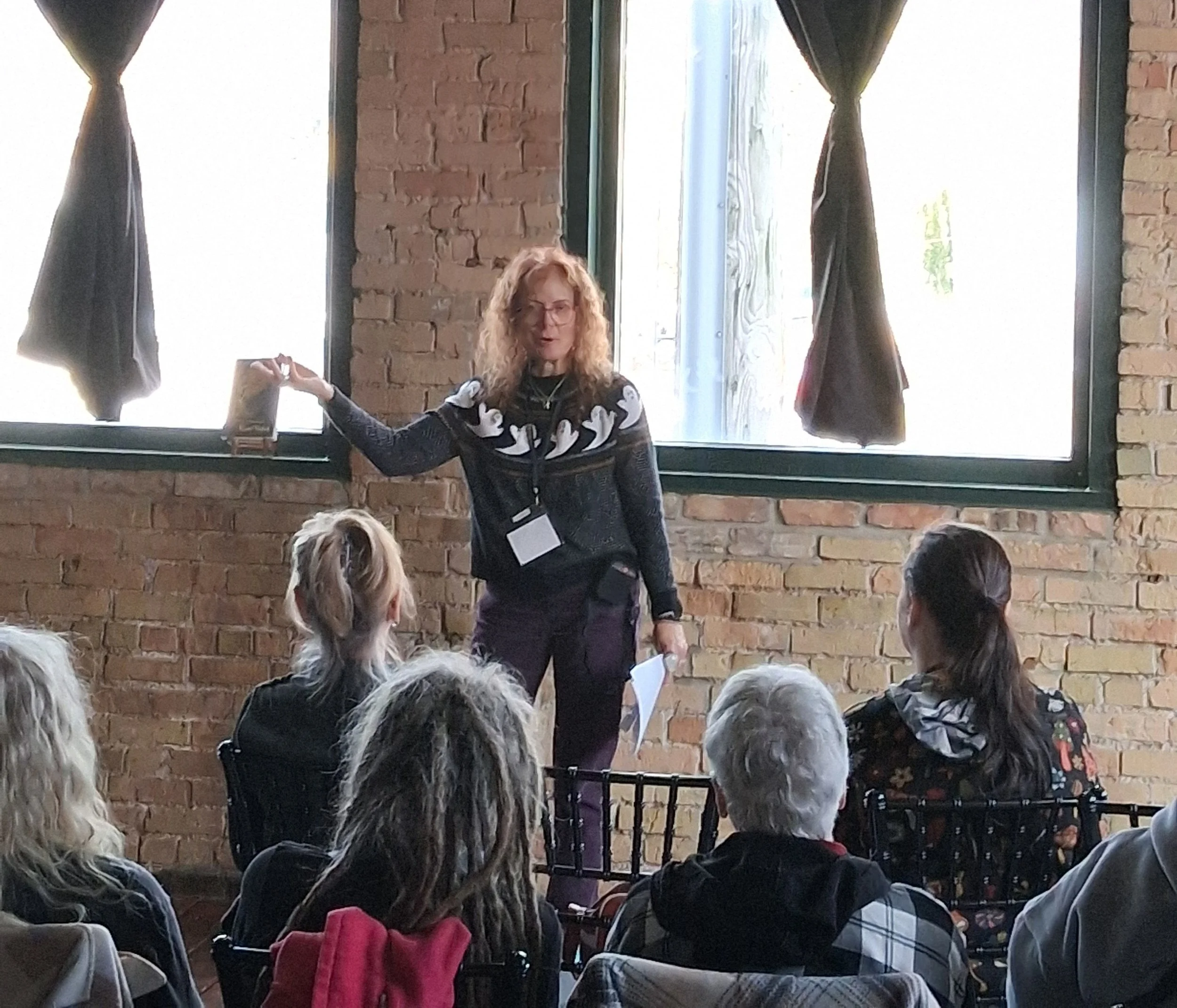 Presenting “Dealing with Ghosts & Spirits” at a convention in Duluth. I gave a similar talk to the American Association of University Women; find the link to that recording on the “Media” page.